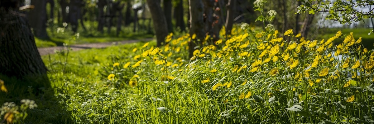 Ook een vroege voorjaarsbloeier is de gele weegbreezonnebloem (Doronicum plantagineum).